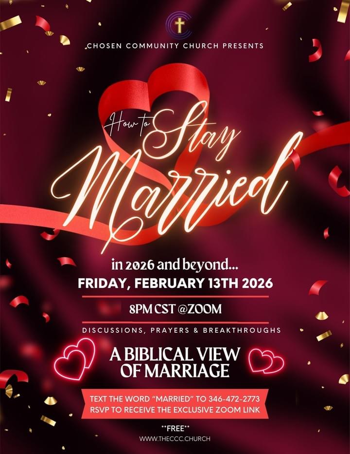 Chosen Community Church is committed to helping you build an authentic relationship with Jesus Christ our Lord. Join Pastor Edem Ekene and his wife Sabbath Ekene as we journey through Bible scriptures together every year, hear God's voice more clearly, know Him more and love Him more as a family. Join our community of believers focused on Jesus.